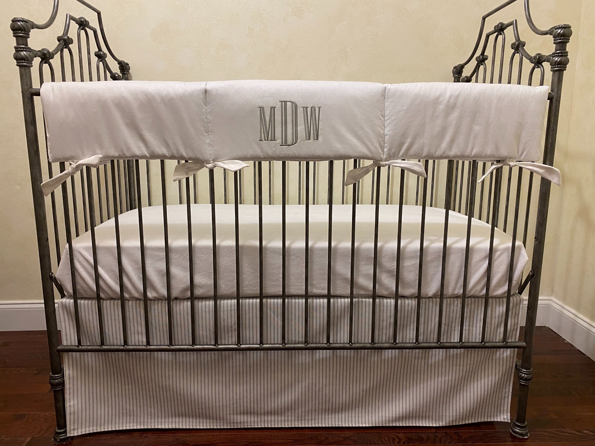 Baby boy crib bedding in white, navy blue, and gray. Choose the pieces you would like from the options menu. All pieces are made to order - please allow 4...