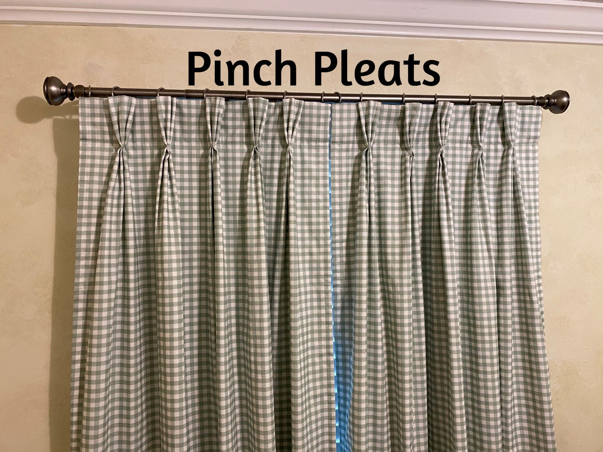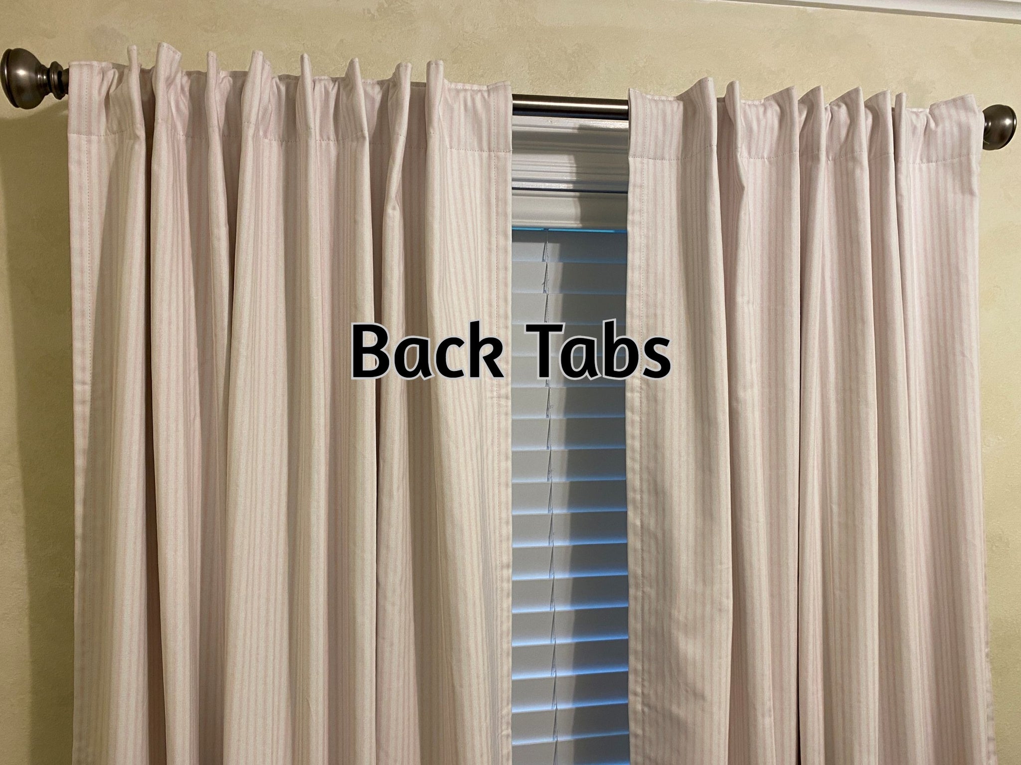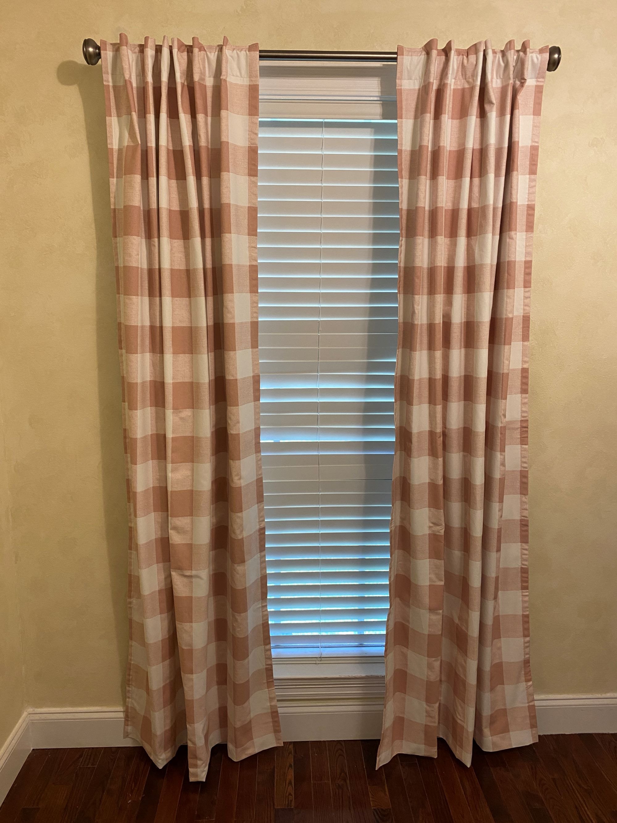 Curtain panels in a blush pink large plaid medium weight cotton print. Price is for a pair of two panels. Other colors available. Choose rod pocket, back tabs, or pinch...