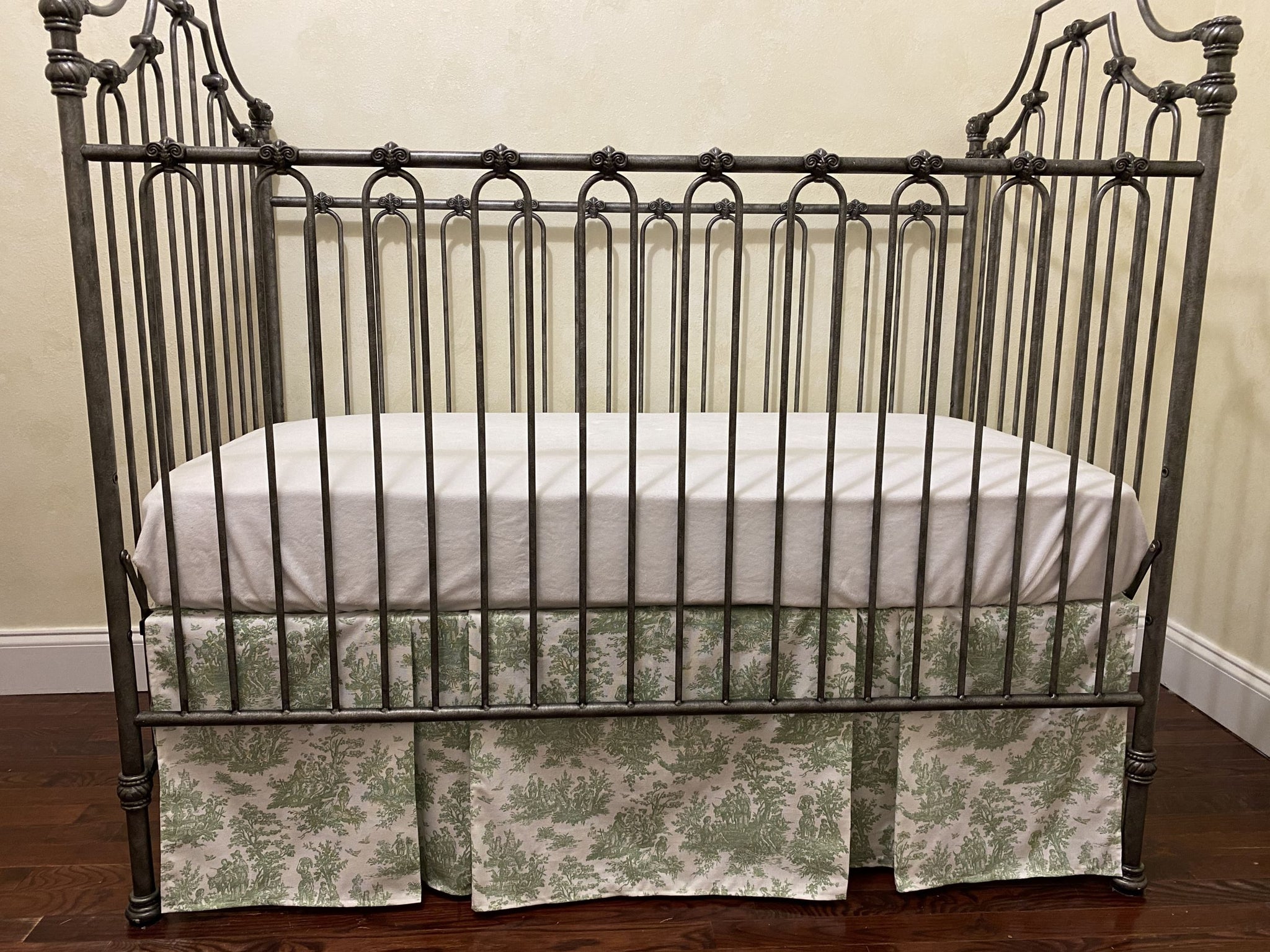 Double pleated style crib skirt in premium cotton colonial toile fabric. Choose the color you would like from the color chart. Available for standard size cribs (28" x 52" mattress)...