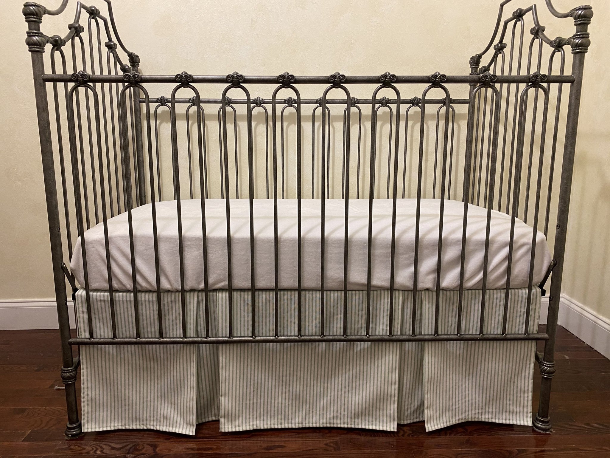 Double pleated style crib skirt in premium cotton classic ticking stripe fabric. Choose the color you would like from the color chart. Available for standard size cribs (28" x 52"...