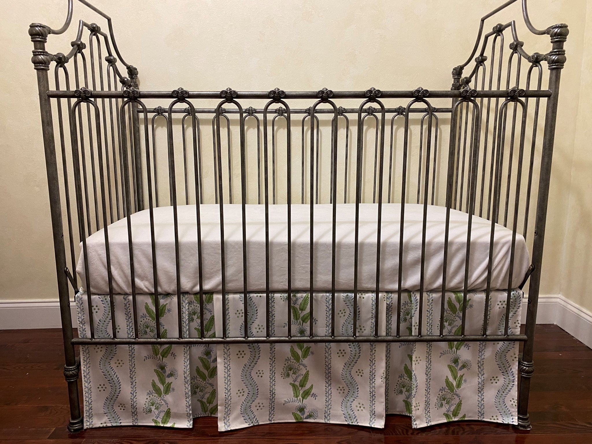 Gathered Crib Skirt in Stripes and Vines Designer Fabric - Choose Your Color