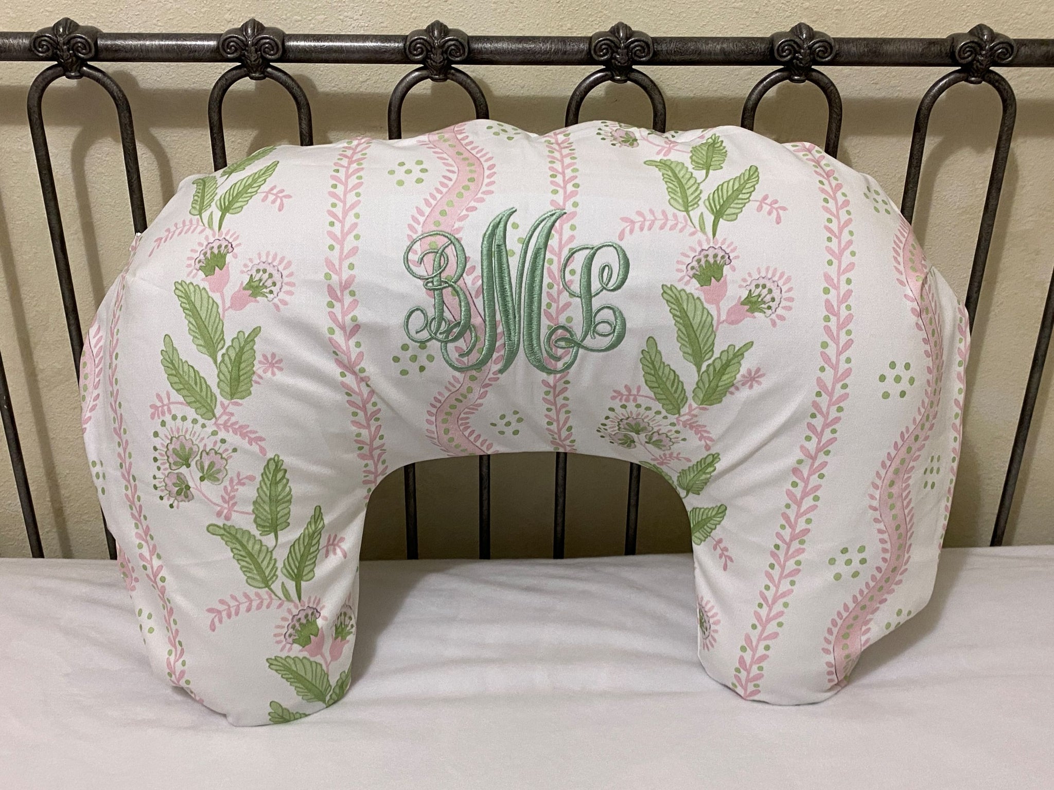 Nursing Pillow Cover in a cotton ticking stripe fabric. Available in green, blue, pale pink, lavender, and tan. Made to fit either the original Boppy Bare Naked nursing pillows or...